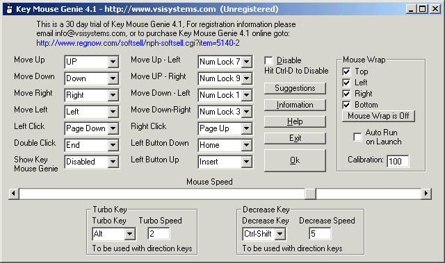 Key Mouse Genie lets you control your mouse using your keyboard. Enables you to move the mouse, send left clicks, right clicks and double clicks. its a keyboard mouse with all the features of a standard mouse and more