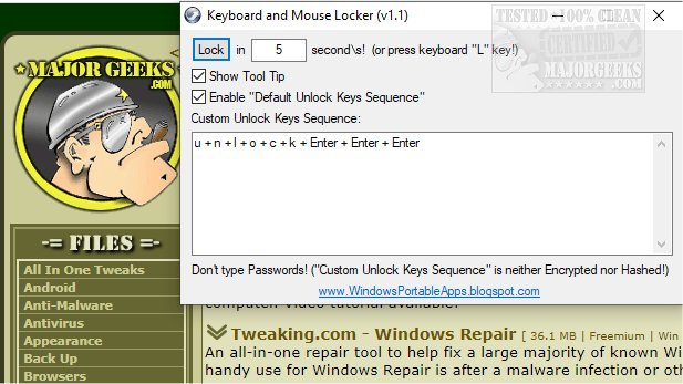 Keyboard and Mouse Locker is not a super-secure type of app but should be considered more of a safeguard to deter anyone from attempting to use your machine in your absence.