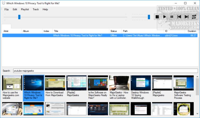 Kitten Player has a minimalist interface that's easy to navigate. One of its most significant promises is the ability to download and play YouTube videos, and that's rarely as simple as it sounds. After all, YouTube isn't in the business of having you download their videos for offline use and frankly, we don't blame them. So, it came of little surprise when direct downloading of videos by URL's failed for us. A search is also available, and that's pretty slick. Typing in "YouTube MajorGeeks" brought up the entire MajorGeeks YouTube channel and all of our videos.