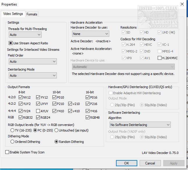 Important: Please note that you don't need to install any other codec pack to play video or audio files on your computer if you install LAV Filters. Most popular codec packs (i.e., K-Lite Codec Pack) will install LAV Filters by default. Several popular multimedia players such as MPC-HC (Media Player Classic - Home Edition) come with LAV Filters installed. If you use such a player, there is no need to install LAV Filters (or any other codec pack). You can install LAV Filters if your current multimedia player requires/depends on a codec pack or additional filters to play audio and video formats.