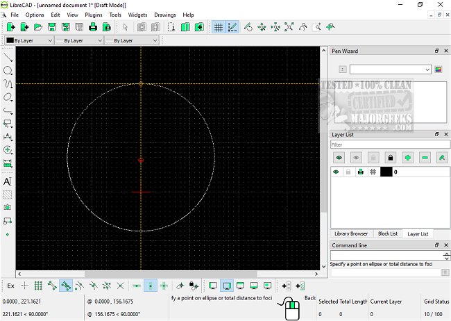 With LibreCAD Portable, you can easily calculate distances between two points or from a point to an entity. You can also determine the angle between two lines and the total length of a selected element. Furthermore, managing layers is a breeze, with the ability to show/hide, add, remove, edit, or lock them with just a click of a button.