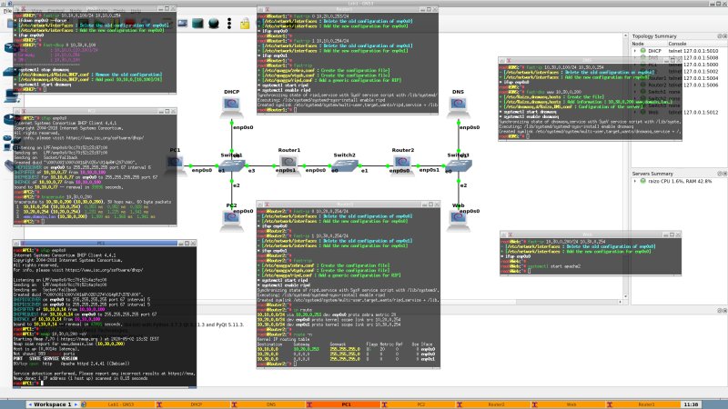 ● You have virtual machines based on Debian that you can connect with switches or hubs and that you can use as a client, server, or router