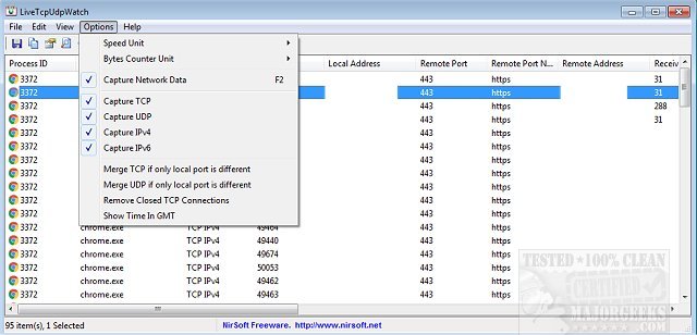 LiveTcpUdpWatch is another portable Nirsoft utility that permits you to retrieve real-time TCP and UDP activity on your system.