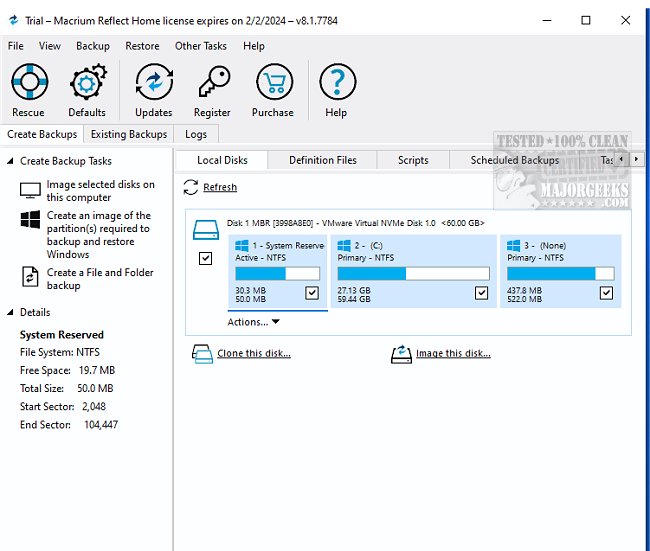 Macrium Reflect Home Edition is an efficient and secure Windows system backup and recovery tool that allows you to easily create accurate and reliable images of your HDD or individual partitions. These images can be used to restore your entire disk, partition, or individual files and folders in case of a partial or complete system loss.