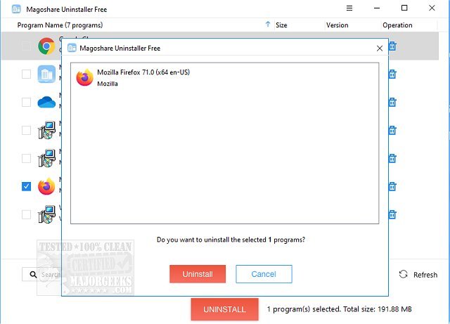 Magoshare Uninstaller Free can uninstall single programs or multiples in batch through a user-friendly interface that will be comfortable to use even for the more novice user. It also can remove all leftovers. Uninstallation can be performed in as little as two clicks achieving a complete uninstall of unwanted programs or software from your machine. A dropdown menu includes links to other Magoshare programs, the app's user guide, and manual update checking.