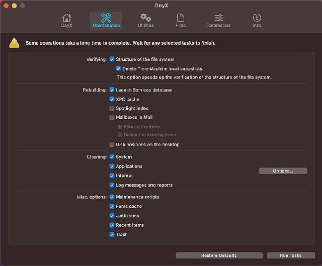 Maintenance is an operating system maintenance and cleaning utility for macOS that you can use to perform miscellaneous computer maintenance tasks: run periodic scripts; rebuild the databases; delete applications, fonts, system caches; and more.