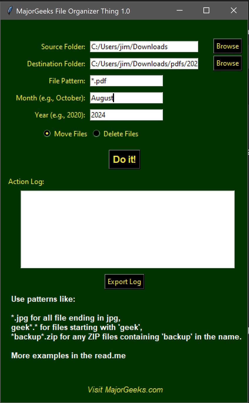 We at MajorGeeks handle a LOT of data. Downloads, images, exes documents, saved logs, 10's of thousands of photographs in both jpg and cr2's -- YIKES! After years of ignoring and having a rather random -- but complete -- storage system. It came to the point where I couldn't find anything in this massive, scattered mess. It was time to sort things out... Enter I started cobbling some batch files to help, and the next thing you know, File Organizer Thing was born!!!