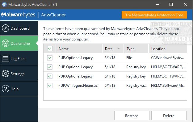 Malwarebytes AdwCleaner is a free anti-malware app that deletes adware, PUPs, toolbars, and browser hijackers. Video tutorial available. AdwCleaner stable can be downloaded here. For complete internet protection, download Malwarebytes here.