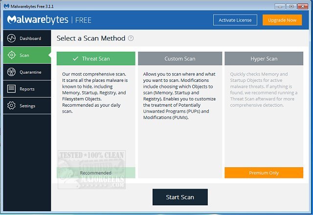 Malwarebytes Anti-Malware monitors every process and stops malicious processes before they even start. The Realtime Protection Module uses advanced heuristic scanning technology which monitors your system to keep it safe and secure. In addition, they have implemented a threats center which will allow you to keep up to date with the latest malware threats.