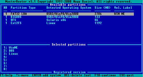 Master Booter is a command line driven partitioning utility. It has many commands and switches to be as flexible as possible. It's a necessary tool when it comes to partitioning many harddisks. Features: partition creating, deleting, FAT/NTFS hiding, fast FAT16/FAT32 partition formatting, MBR reconstructing-saving-restoring, displaying info and more.