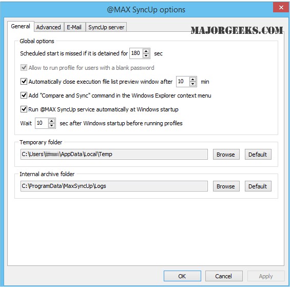 @MAX SyncUp secures all your essential files from accidental deletion or system crash by creating backups or synchronizing your files to a local folder, removable USB drive, networked computer, or Google Drive.