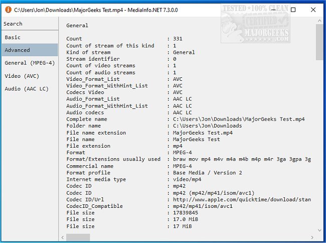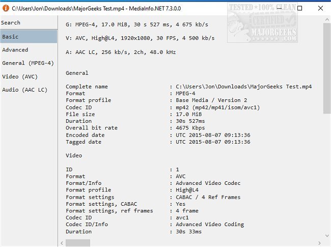 Designed with media files in mind, MediaInfo.NET also works with other file types, as seen in screenshot five, albeit with less info displayed. It works via drag n' dropping a file in (or via right-clicking); it processes the file and propagates the sparse UI with the pulled info. You are given access to advanced, basic, general, video/audio details for media files detailing creation dates, formats, bit rates, and more. The operation is fast and displayed in an organized manner.