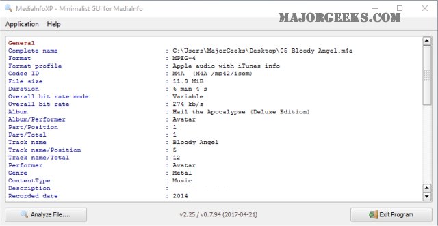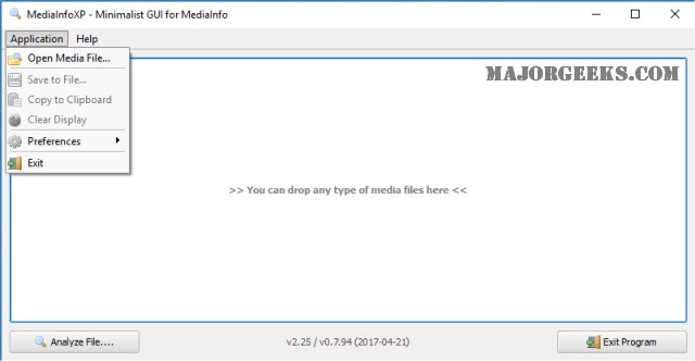MediaInfoXP is portable and requires no installation. Just extract it to a folder and run. You can drag-and-drop and music or videos directly into the application or open them under the Application tab.
