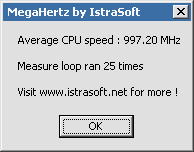 MegaHertz is a small utility calculating the actual clock speed of your CPU. The number of loops to run can be changed in order to increase accuracy.