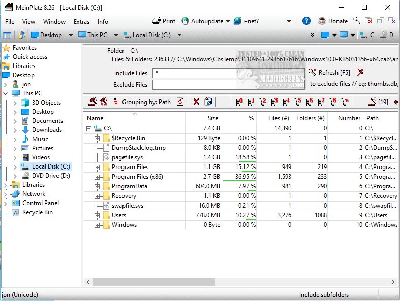 MeinPlatz, or My-Place, offers an easy and fast way to scan the hard disk for lost disk space.