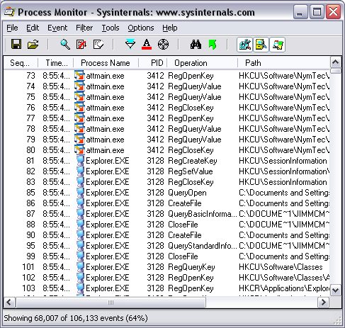 Process Monitor combines the features of two legacy Sysinternals utilities, Filemon and Regmon. It adds an extensive list of enhancements, including rich and non-destructive filtering, comprehensive event properties such as session IDs and user names, reliable process information, full thread stacks with integrated symbol support for each operation, simultaneous logging to a file, and much more.