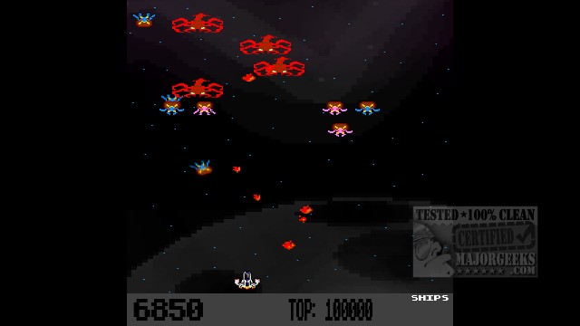 Milky Way Madness is a classic coin-op style game with Galaga or Galaxian similarities.