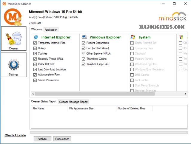 MindStick Cleaner removes unused files from your system - allowing Windows to run faster and freeing up valuable hard disk space. It also cleans traces of your online activities such as your Internet history. The best part of MindStick Cleaner is that it’s fast, free, handy-to-use and contains no spyware and adware.