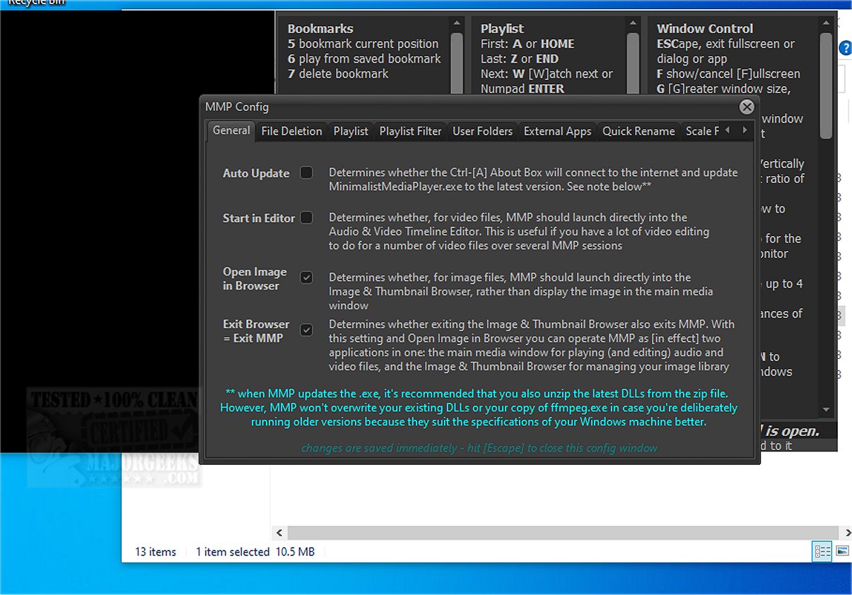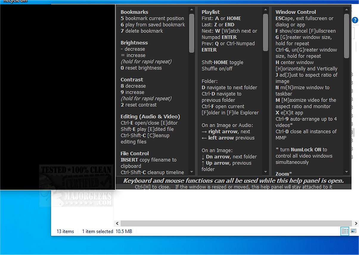 Despite its focus on simplicity and a clean workspace, Minimalist Media Player is far from basic. It features an extensive array of controls, all of which can be accessed via a help panel that is easily toggled using the CTRL-H key combination. This player also includes various file management tools, facilitating the organization of media content and providing playback and playlist controls. Users can load files into a playlist and navigate quickly through media files in a folder.
