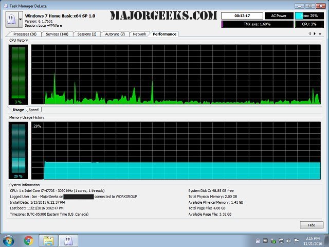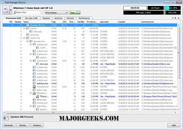 MiTeC Task Manager Deluxe provides a free, lightweight, portable package that will enhance the features available in the standard Windows Task Manager.
