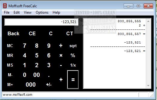 You can use it in place of the default Windows calculator but with added functionality that includes the ability to adjust the calculator's size so you can size it the way you want. Moffsoft FreeCalc will also remember the size and position next time you use it. It also produces a tape that can be saved, printed, or cleared which will be helpful for important accounting or general ledger jobs.