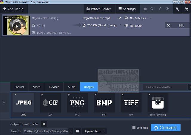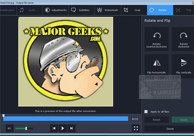Using Movavi Video Converter is as simple as it gets, You only pick the format or device from the supported options list then hit one button, and you're done. But that's not all. You are also given a ton of extra tools for enhancing video quality, adjusting and normalizing sound levels, merge, trim, crop, and rotate the media before you convert them.