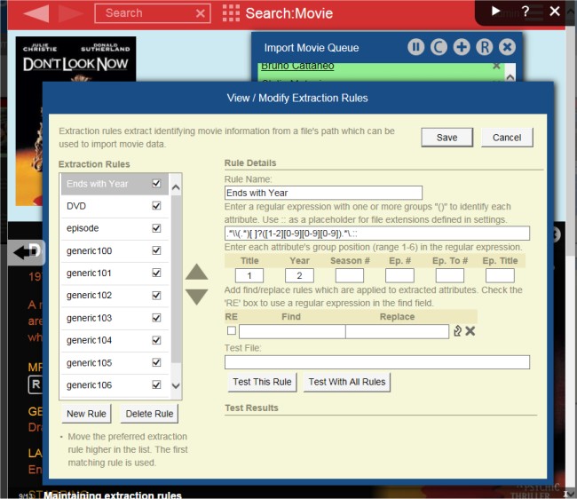 Allows you to import movie information for each movie file. The only required setup is to specify your directories and file extensions in the system settings.