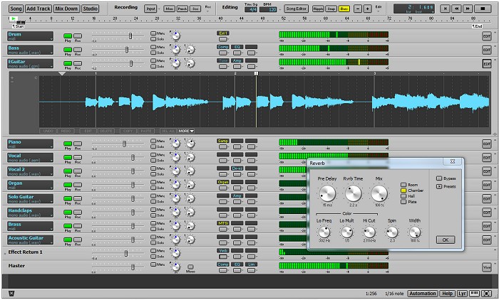 It combines a multitrack recorder, a mixer, many effects, and a MIDI sequencer in one package: everything needed to turn your computer into a digital multitrack recording studio.