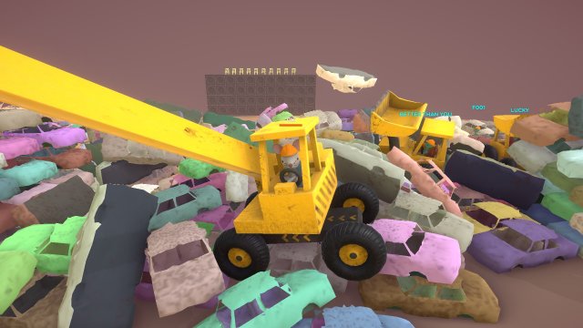 You can hop in and out of different construction vehicles, parkour over mounds of shifting junk, push scraps to form barriers or knock them down, run over other contestants, or smash them into oblivion with the wrecking ball.