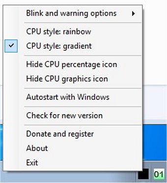 My CPU Monitor is a small, lightweight tool that accurately keeps track of cpu usage in real time - right from the systray. The tool uses two simple icons, one shows percentage meter and the other provides a processor load graph. It allows you to choose at what predetermined level a high usage warning is displayed. You have 2 choices of warning type; you can have the icon blink or show a warning message. This is not a fancy tool, but it does the job and keeps you informed.