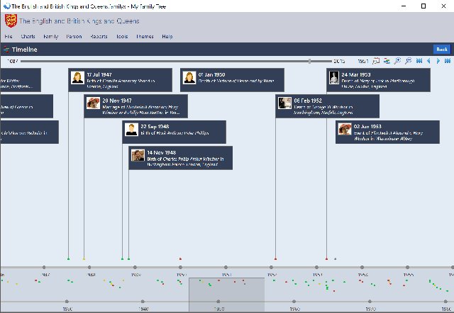 Family statistics analysis is available for births, deaths, and marriages, and you can view all family events in an interactive timeline.