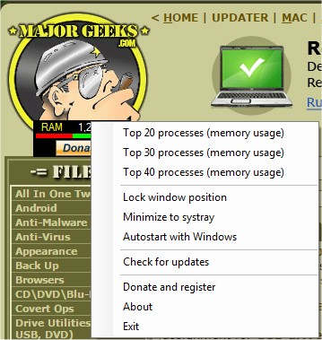You have the option to view it straight from the systray as well as on screen. Additionally, you will be able to view the top processes using up the most RAM by right clicking on the window or on the systray icon.