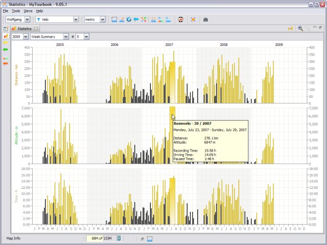 MyTourbook is an application designed to help people visualize and analyze tours that are recorded by GPS devices, bike computers, or exercise computers. It's cross-platform software running on Linux, Windows, and Mac.