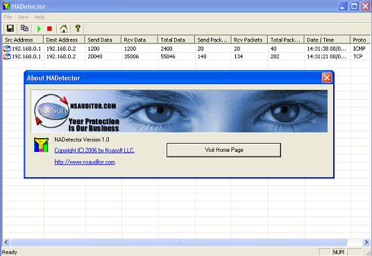 NADetector monitors and analyzes the network traffic and displays statistical information pertaining to each IP address pair and protocol, helping network administrators and users troubleshoot network problems. The main purpose of NADetector is to allow you to collect statistical information about your network traffic that passes through network adapters and displays incoming, outgoing and summary traffic statistics.
