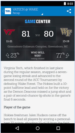 NCAA Sports for Android is the official NCAA Sports app that gives you an unmatched college sports experience delivered right to your Android device.
