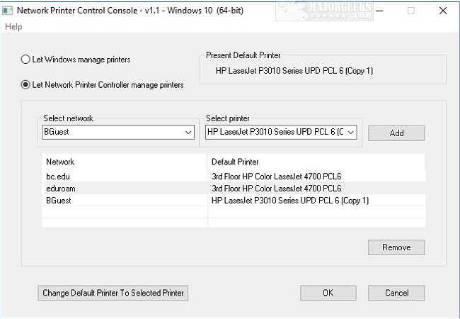 Network Printer Control (NPC) is designed to improve the management of default printers in Windows 8 and 10.