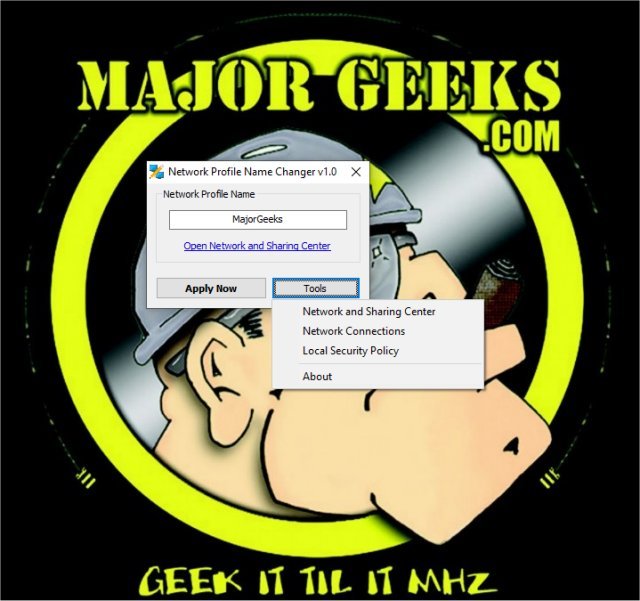 After you open Network Profile Name Changer, you can enter your name of choice, then click apply - that's it. Network Profile Name Changer also provides access to several commonly used local system network tools.