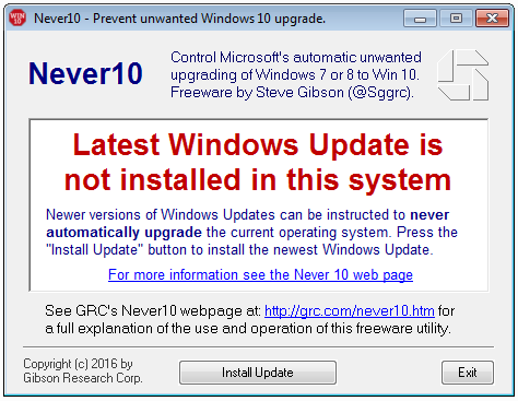 Never 10 gives you control over whether Windows 7 or 8.1 will upgrade itself to Windows 10. Video tutorial available.