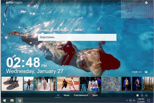 Enjoy a different image from the Getty library that consists of stunning photography from around the world - from nature to city life and everything in between. Not only that, but you get quick links at the bottom of the opened tab to areas of interest like recommended current News, Entertainment, and Sports. You can even purchase one of the images from Getty Images if it is one that really strikes you.