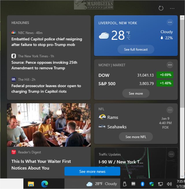 Starting with Windows 10 Build 21286, there is now a News and interests option that directly shows the weather and news from your Taskbar. Here's how to remove or customize it. At the time of this listing, it is only seen by Windows Insiders.