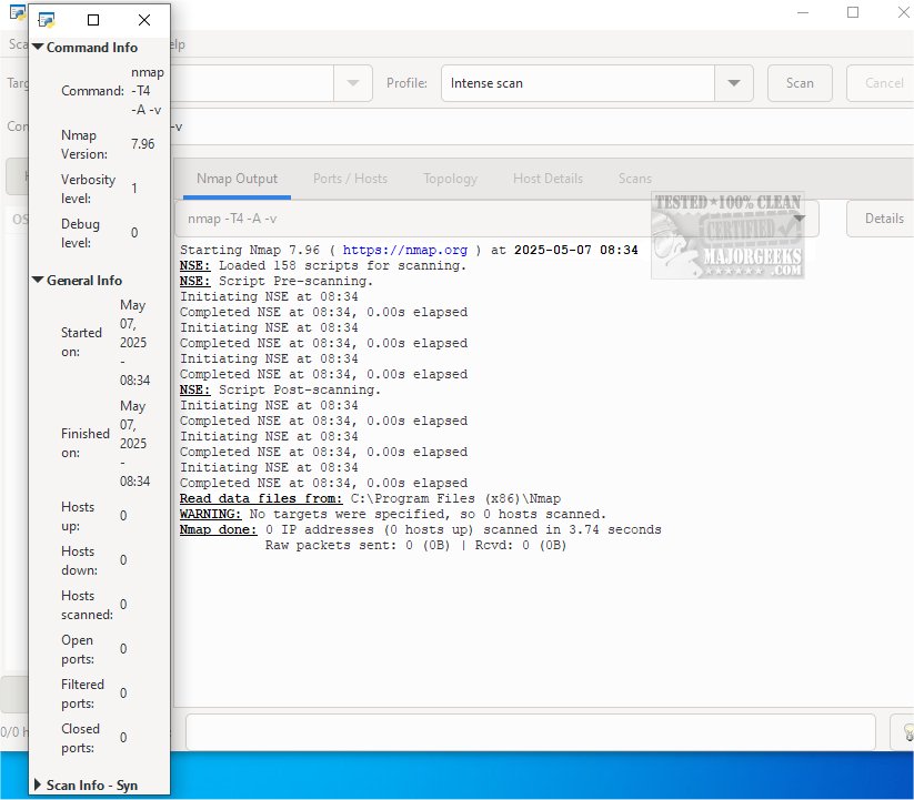 ●Easy: While Nmap offers a rich set of advanced features for power users, you can start as simply as "Nmap -v -A target host." Both traditional command line and graphical (GUI) versions are available to suit your preference. Binaries are available for those who do not wish to compile Nmap from the source.