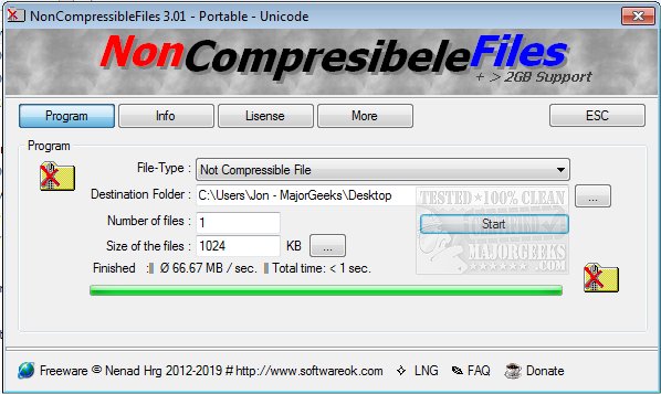 NonCompressibleFiles allows you to quickly and easily create one or more non-compressible files and maximum compressible files for testing compression programs on their performance.