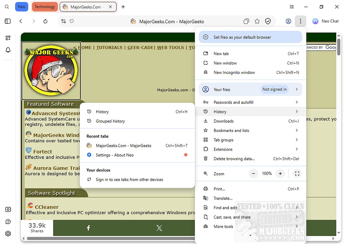 As mentioned above, Norton Neo is based on the Chromium engine and features a familiar tab-based interface. It includes essential controls such as password managers, download managers, a history tracker, bookmarks, tab groups, and support for extensions to extend functionality.