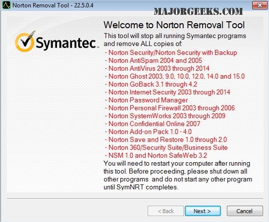 Norton Remove and Reinstall Tool 4.5.0.231