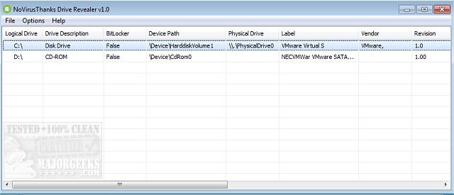 Your machine's OS includes many underlying pieces of hardware like the hard disk drive, CD-ROM/DVD-ROM/BLURAY drive, floppy disk or a USB flash drive. NoVirusThanks Drive Revealer will display details that include the vendor ID, product label, serial number, file system type, volume name, hardware revision, etc. All the gathered information is displayed from a single window interface that is clear and uncluttered.