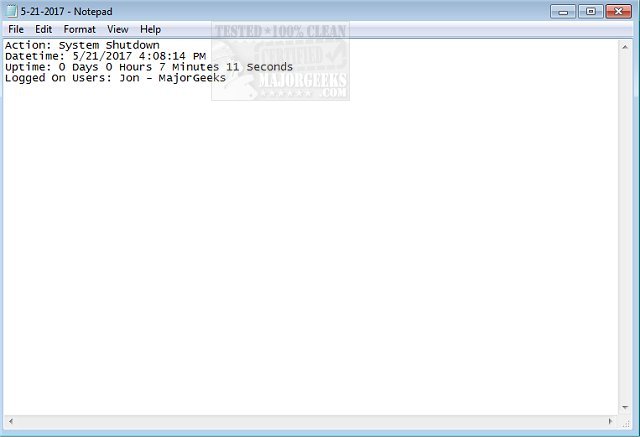 NoVirusThanks Shutdown Logger is a service-only app that logs the date, time, and uptime of logged in users.
