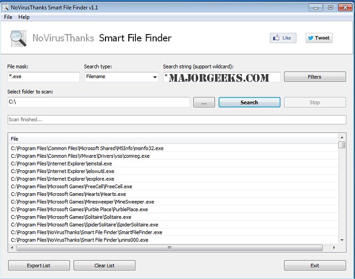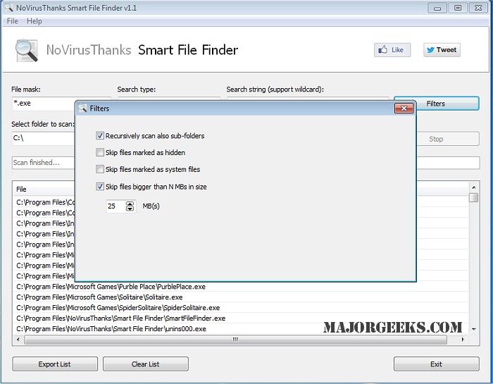 NoVirusThanks Smart File Finder Features: