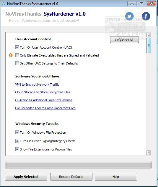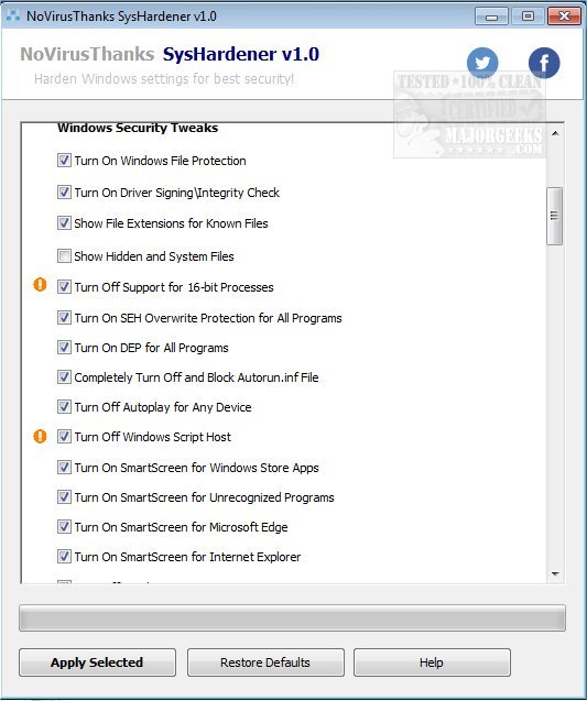NoVirusThanks SysHardener is intended to bolster your Windows settings specifically to mitigate against a multitude of cybersecurity threats.