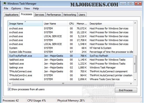 NoVirusThanks Systray Refresh silently operates in the background ensuring your systray stays clean from dead icons left behind after program termination.