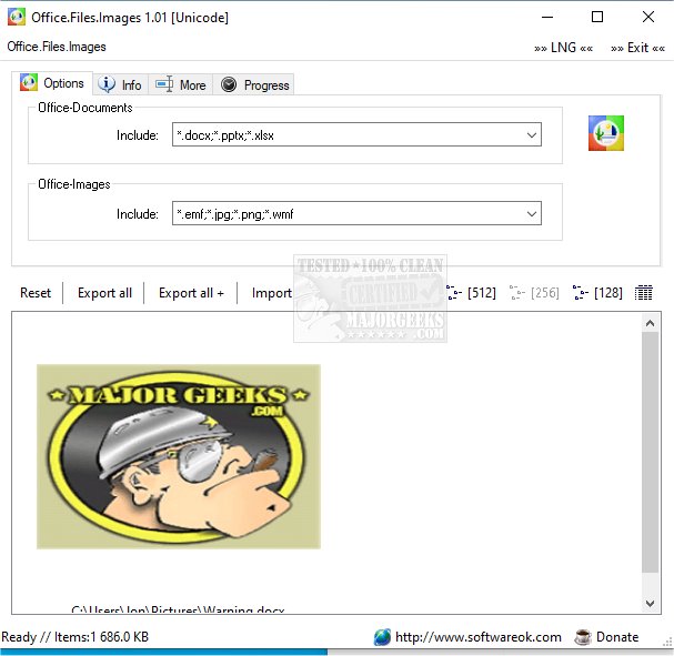 Over time, you can accumulate many Microsoft Office/Open Office files for work or personal projects. Some of these files have images included with them. Maybe you remember that perfect image and want to use it again, but to search manually would be a major undertaking. This is where this tiny utility comes into play. Drop your files in and Office.Files.Images will locate any images and display them. From there, you can export them for use again.